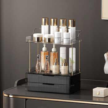 2 קומות דלפק חדר אמבטיה ארגונית דלפק אחסון קוסמטיקה מדף טיפוח עור איפור בושם מתלה שידה מחזיק אחסון